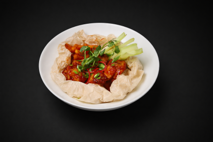 18,50 BYNКрыло куриное в глазировке, соус кисло-сладкий, батат фри, сельдерей, зелёный лук, кинза, чили.