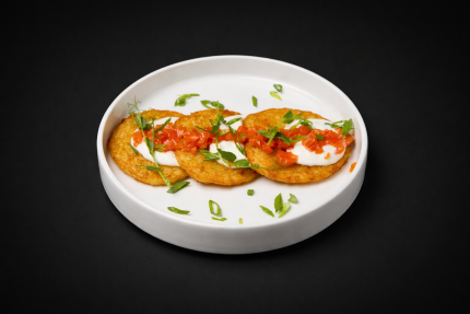 17,90 BYNКартофельные оладьи, сметанный соус, форель, зеленый лук.