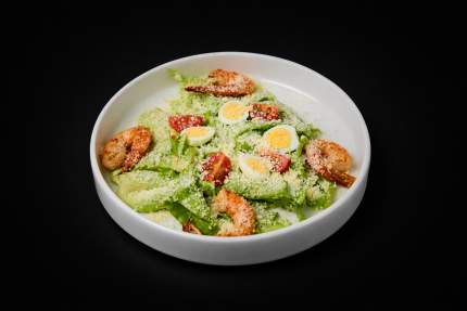 19,90 BYNСалат микс, креветки фламбе, соус сладкий чили, черри, перепелиное яйцо, сыр пармезан