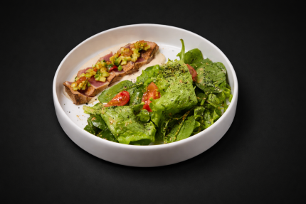 19,50 BYNСалат микс, говядина су-вид, соус перечный RED, черри, брокколи, кунжут ким-чи, перец апельсиновый, кинза, мята.