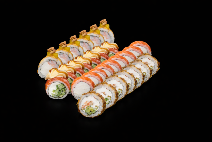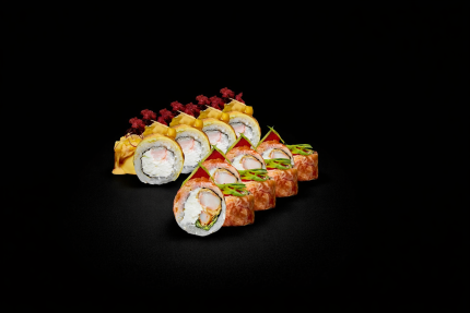 66,90 BYNФиладельфия классик, Сюрикен, Бонито с жареным лососем, Креветка манго.
