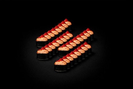 56,90 BYNЗапеченный рол с креветкой, Запеченный ролл с лососем, Запеченный ролл с угрем, Запеченный ролл с крабом.