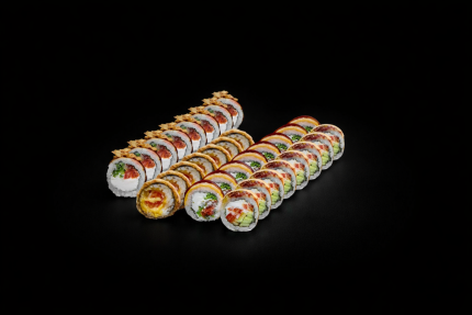 73,90 BYNСяке темпура, Запеченный ролл с лососем, Жареный бекон с криспи луком, Филадельфия классик 4шт, Кайсо эби 4шт, Нагасаки мак.
