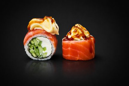 Диапазон цен: 13,50 BYN – 24,90 BYNРис, нори, сыр сливочный, лосось, огурец, соус терияки.