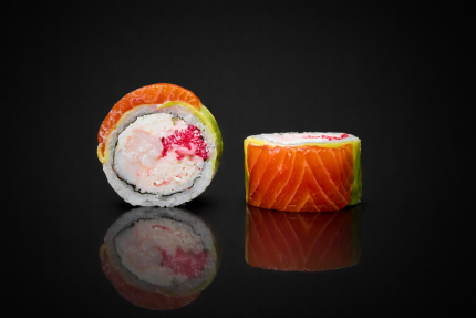 Диапазон цен: 12,90 BYN – 19,90 BYNРис, нори, сыр сливочный, икра тобико, креветка, авокадо, соус терияки, кунжут.