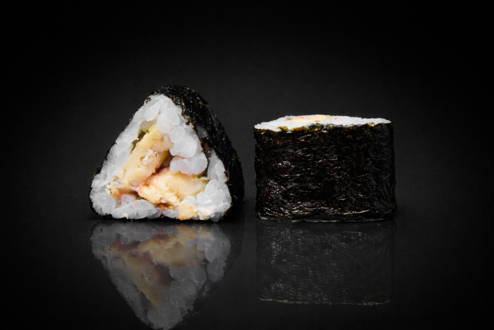 Рис, нори, угорь, соус унаги, кунжут